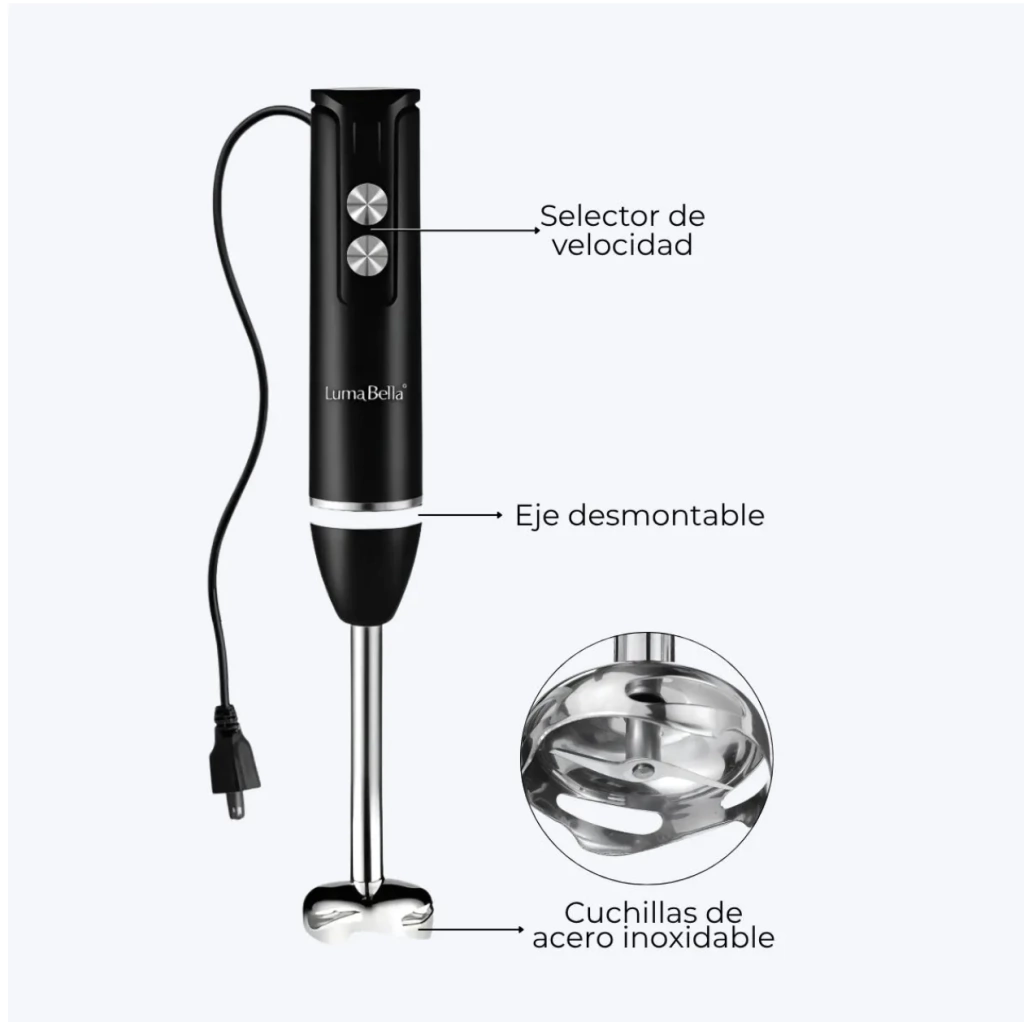 Equipado con dos velocidades, permite ajustar el rendimiento según el tipo de preparación que desees realizar. La varilla removible hace que la limpieza sea rápida y práctica, optimizando tu tiempo en la cocina y asegurando que cada comida sea un éxito. La línea HAND BLENDER de Luma Bella es sinónimo de calidad y versatilidad, perfecta para quienes disfrutan experimentar con nuevas recetas.