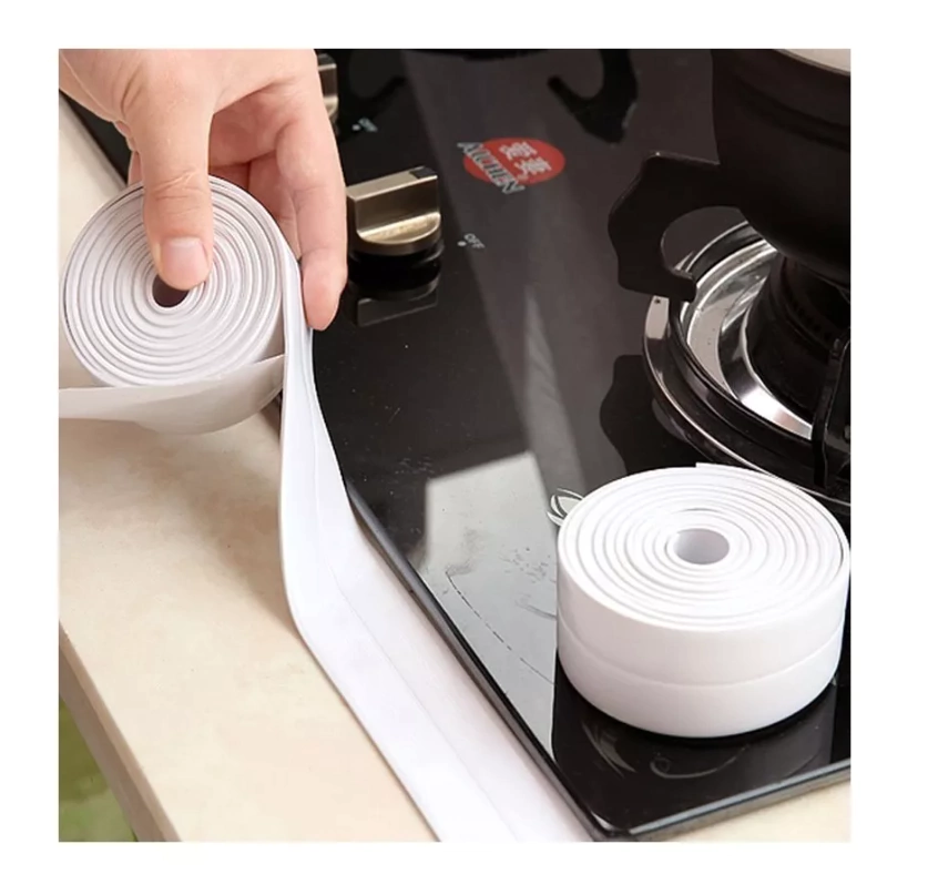 4. En primer lugar, retire la cinta adhesiva en la parte posterior del producto y dóblela a 90 grados, y luego fije la tira impermeable en la superficie a pegar; continúe despegando la cinta adhesiva hasta que se completen todas las instalaciones;